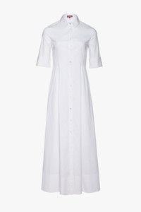 A maxi shirt dress made out of stretchy cotton poplin, the Joan Dress is a modern yet polished take on a classic.