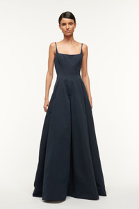 A maxi-length grosgrain gown as seen on our Spring '24 runway. The Maxi Joli has a full a-line skirt, wide square neckline with fitted bodice and open back. MORE DETAILS - 60% Cotton, 40% Polyester - Model is 5'10 and wearing a size 2 - Dry Clean Only