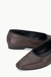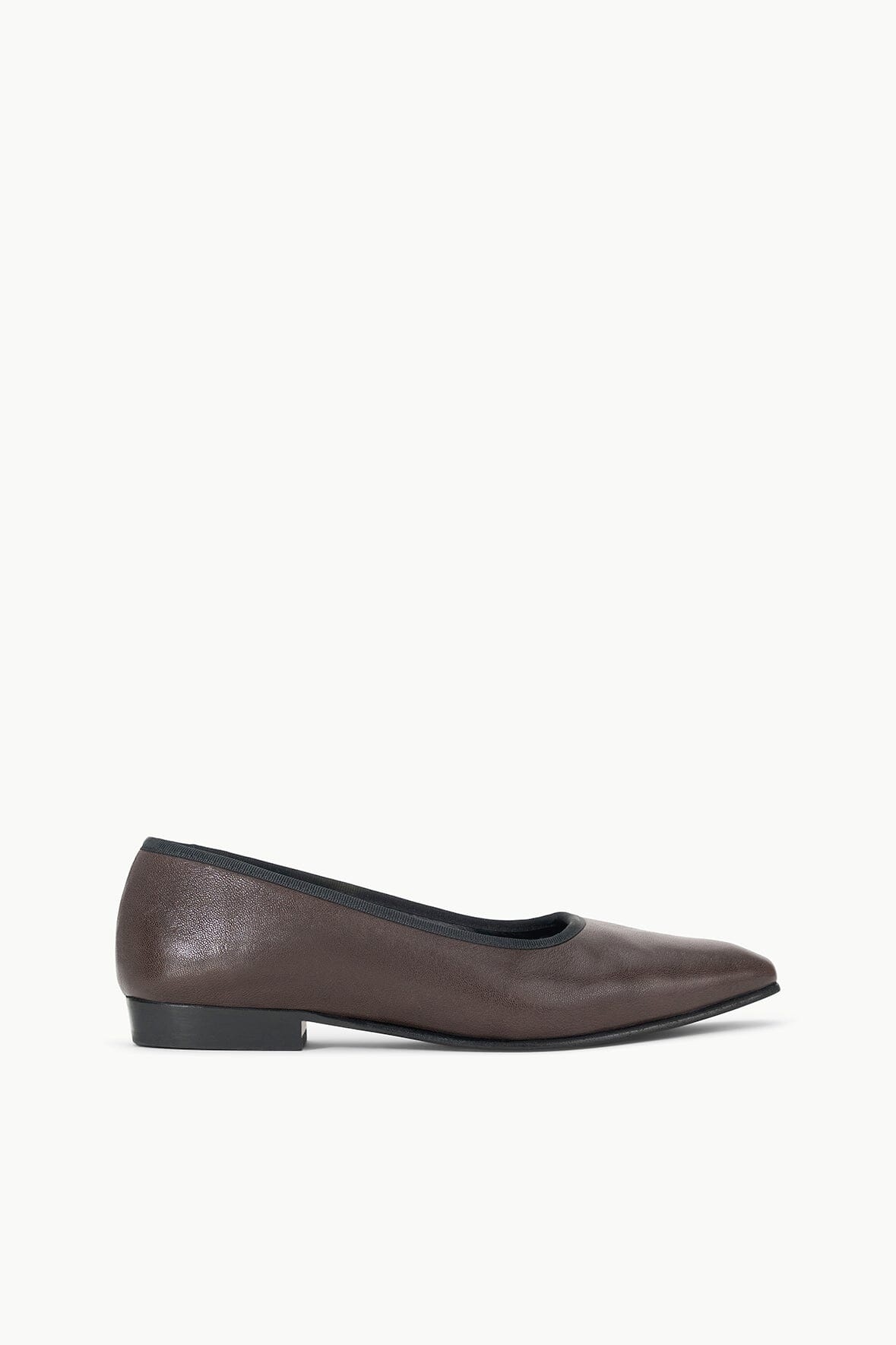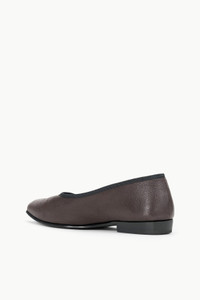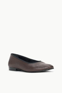 The Keith Ballet Flat is a leather flat with grosgrain trim featuring an elongated squared off toe. MORE DETAILS - Leather Ballet Flat - Upper: 100% Sheep Leather, Trim: 100% Polyester, Sole: 75% Cow leather, 25% Rubber - Heel Height: 15MM / 0.6IN