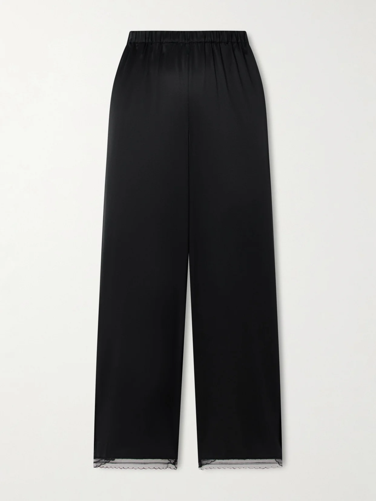 Kirby Cropped Lace-trimmed Silk-blend Satin Wide-leg Pants