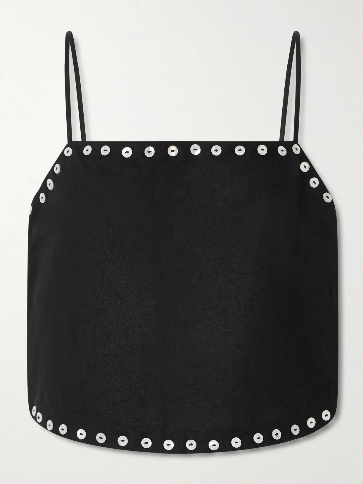 STAUD's 'Kirra' tank is traced with the lustrous buttons to match the coordinating 'Zandra' skirt in our edit. It's made from lightweight and breathable linen and has a floaty shape suspended from slim straps. Pack it for your next vacation.