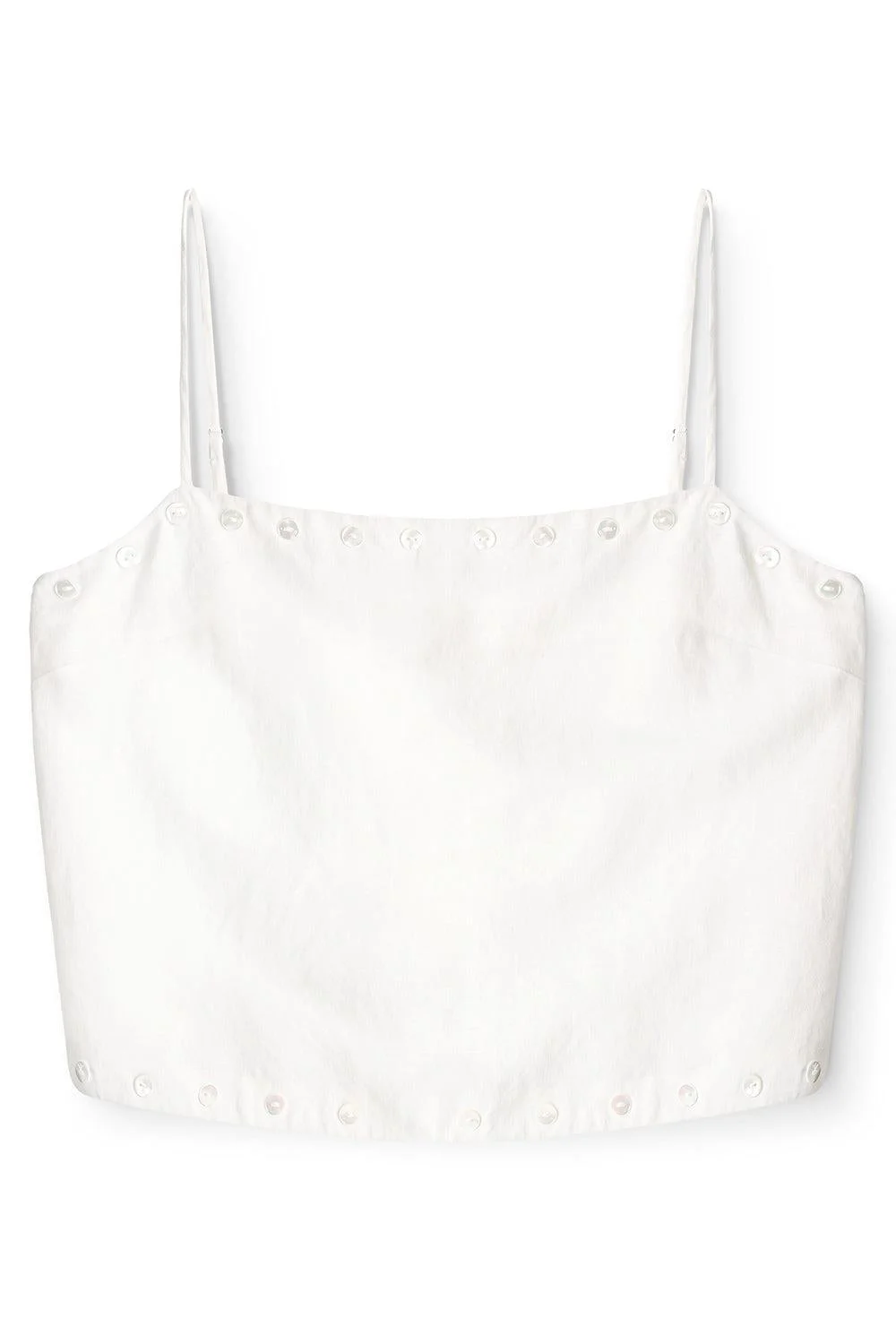 DETAILS AND INSIGHT Staud kirra linen tank in ivory. 52% Linen 48% Viscose Dry Clean Made In China Style S26R1148LI-IVY