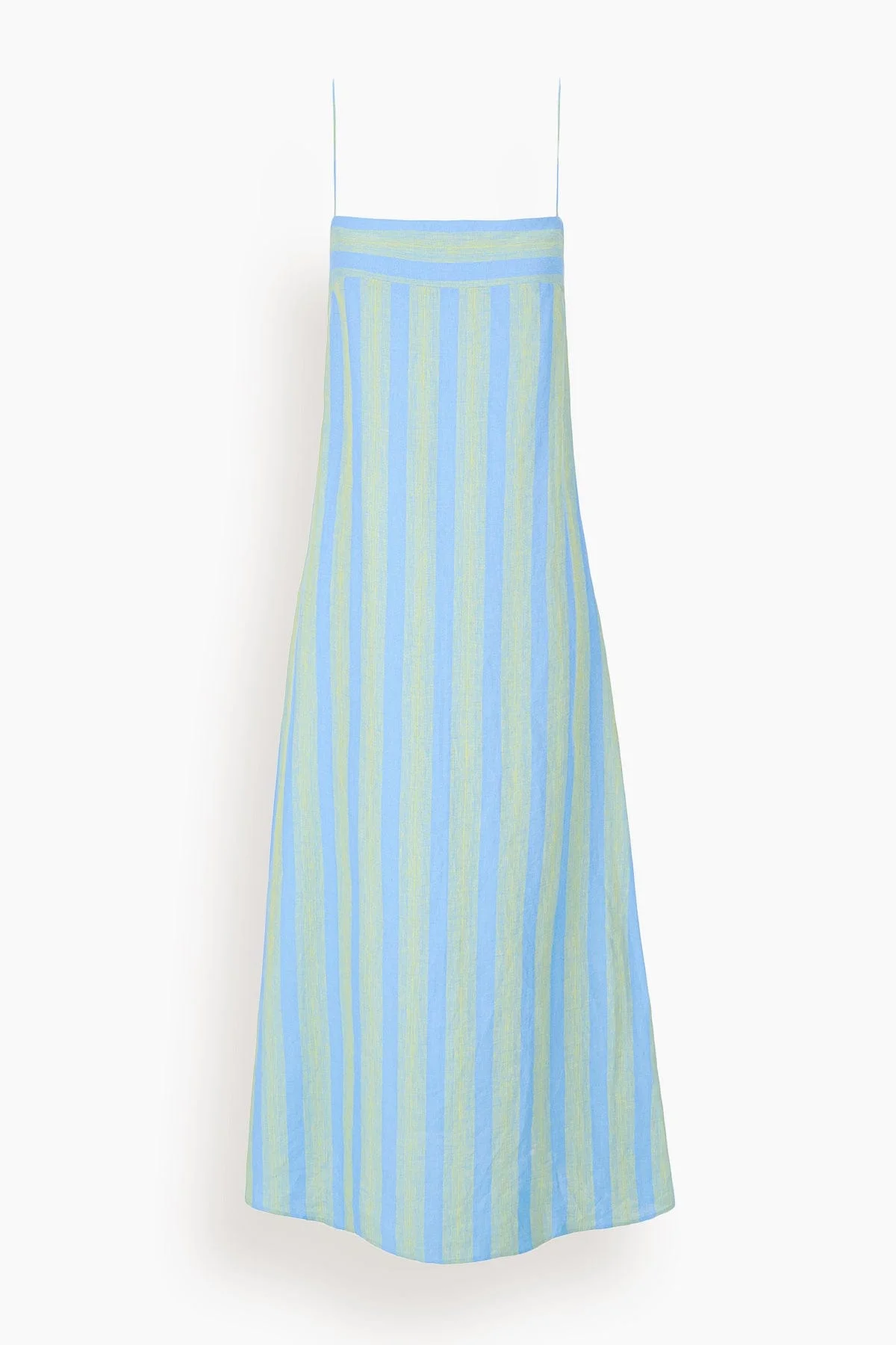 The Staud Laura is back for the season, updated in a colorful striped linen pattern perfect for Spring. This style features a straight neckline and andjustable spaghetti straps. - 100% Linen