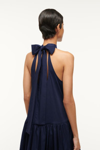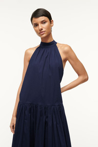 Both casual and elegant, the Midi Marlowe is a midi-length cotton poplin update to our best selling mini. This style features a halter neck with tie at the back and elongated ruffle tier. MORE DETAILS - 98% Cotton, 2% Spandex - Model is 5'10" and wearing a size Small - Dry Clean Only
