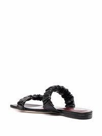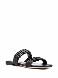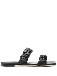 Maya leather flat sandals Black leather Maya leather flat sandals from STAUD featuring ruched detailing, double-strap design, branded footbed, open toe, slip-on style and stacked sole. Imported Composition Outer: Leather 100% Lining: Leather 100% Sole: Leather 100% SIZE & FIT Measurement HEEL 0.59 in(1.5 cm) Sole height 0.39 in(1 cm)
