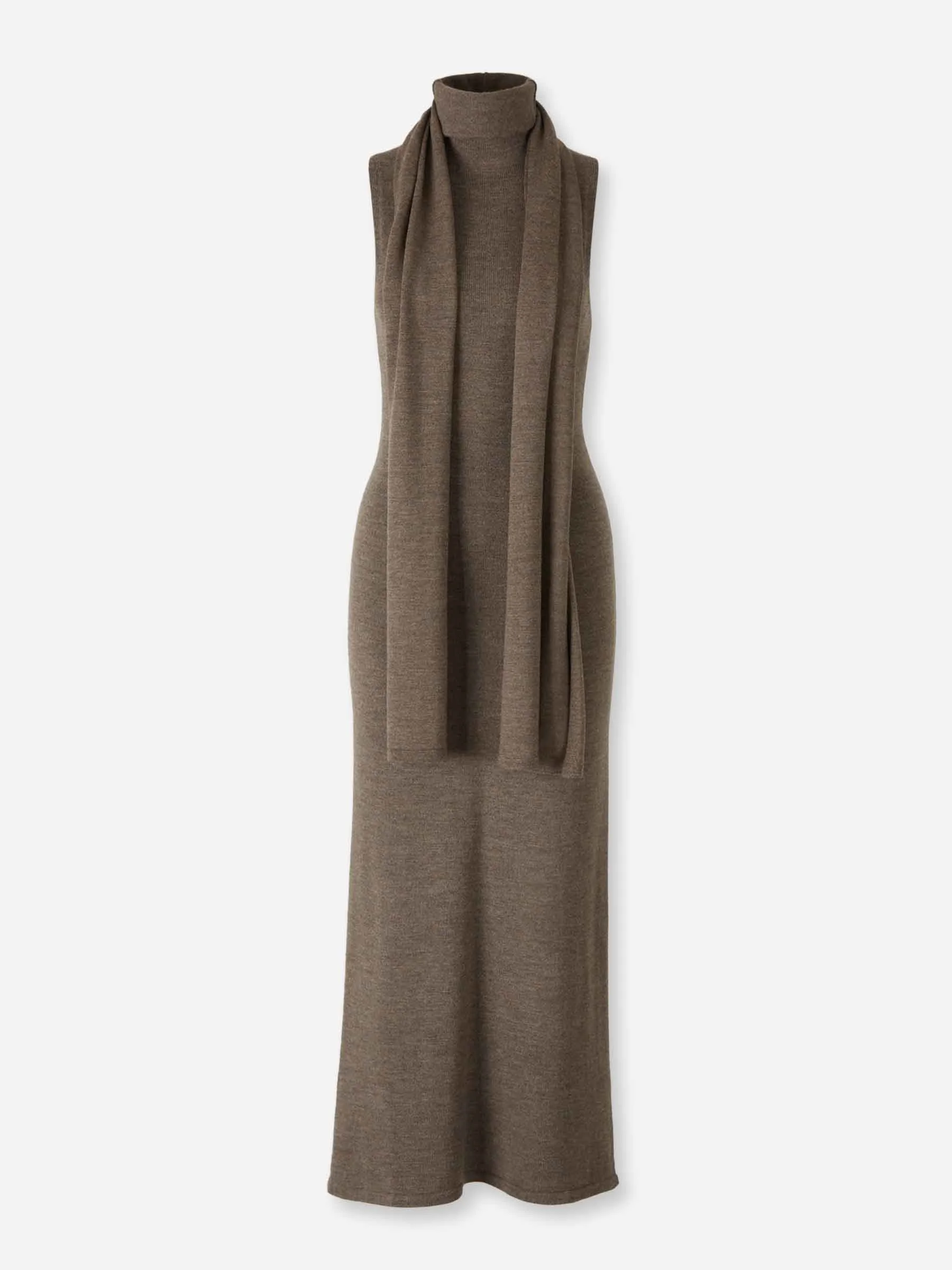 SKU: 721-000639 01 BRAND ID: R25F2130MW Midi dress By Staud • Sleeveless • High neck • Removable matching scarf • Regular fit • Made from merino wool knit • Midi dress • Composition: 100% merino wool • Made in: Italy