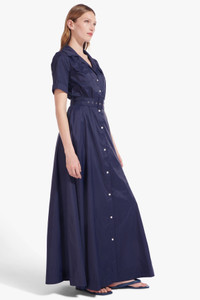 The Millie is a full length dress made out of our sustainable recycled tissue nylon. This dress features two front pockets, a button down front and matching belt. MORE DETAILS - S: 100% Polyester, L: 100% Polyester, T: 98% Cotton, 2% Spandex - Model is 5'10" and wearing a size 2 - Dry Clean Only