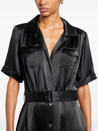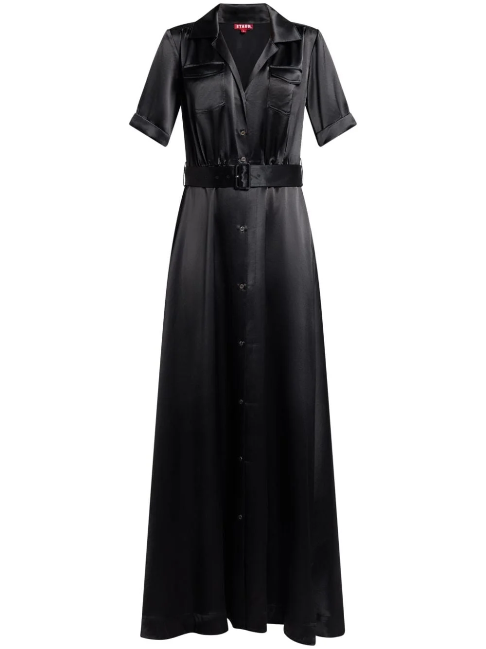 Millie satin-finish maxi shirtdress Highlights - Black - Recycled nylon - Satin finish - Notched collar - Front button fastening - Belted waist - Short sleeves - Two chest flap pockets - Straight hem Imported Composition Recycled Nylon 100% Washing instructions Read Manufacturer Guidelines