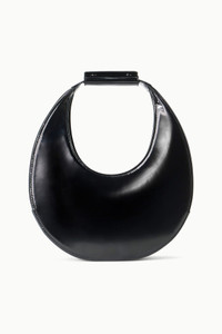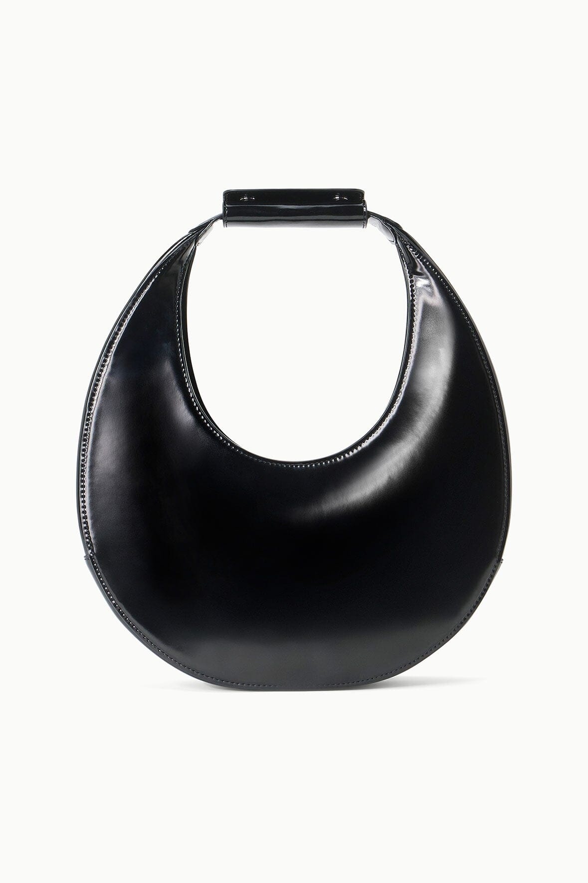 The Moon Bag is updated in a new polished leather for Fall and features a curved handle with a removable STAUD embossed accent. Designed in a crescent moon shape with inner suede lining and a magnetic clasp closure to hold your essentials. MORE DETAILS - Polished Crescent Moon Shoulder Bag in Black - 100% Cow Leather - 11.6" W x 13.5" H x 3" D x 6.8" Handle Drop