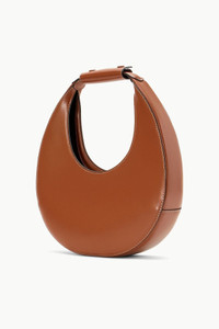 The Moon Bag is a crescent moon shaped tote with a curved handle with removable STAUD-embossed accent. This style features an inner suede lining and a magnetic clasp closure to hold your essentials. MORE DETAILS - Polished Crescent Moon Shoulder Bag in Saddle - 100% Cow Leather - 11.6" W x 13.5" H x 3" D x 6.8" Handle Drop