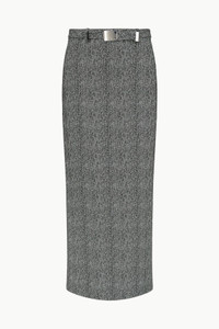 The Murray Skirt is a low-rise column skirt with metal logo skater belt buckle detail and a back slit. Wear with the matching Wells Top for a coordinating set. MORE DETAILS - 75% Rayon, 22% Nylon, 3% Spandex - Model is 5'10 and wearing a size 2 - Dry Clean Only