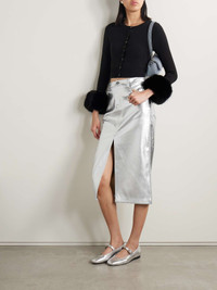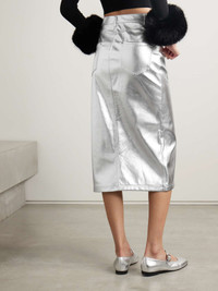 Oaklyn metallic faux leather midi skirt