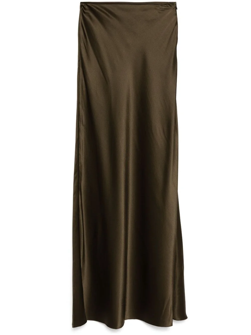 Odin maxi skirt Highlights - Khaki - Concealed side zip fastening - Slight flare Imported Composition Silk 93%, Elastane 7% SIZE & FIT Model measurements Height 5 ft 9 in(1.76 m) Bust/Chest 31.1 in(79 cm) Hips 35.03 in(89 cm) Waist 24.4 in(62 cm) Washing instructions Dry Clean Only