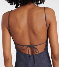 Product Details - Material: 55% linen, 43% viscose, 2% elastane - Care instructions: dry clean - Made in China - Designer color name: Chambray - Closure: zip and hook fastening, self-ties - Trim: 100% linen - Item number: P01044485 Size & Fit - True to size - Low back - Cinched waist - Non-stretchy fabric - The model seen in the picture is 178cm-5'10" and wearing a size US 4