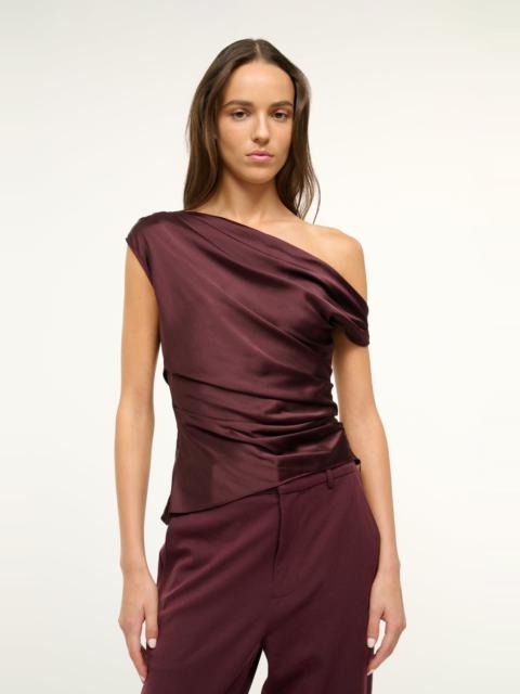 An off-the-shoulder top crafted from a silk satin fabric that offers some stretch for added ease. The Phare Top features a drapey yet fitted silhouette for any occasion. MORE DETAILS - 93% Silk, 7% Spandex - Model is 5'10 and wearing a size 2 - Dry Clean Only