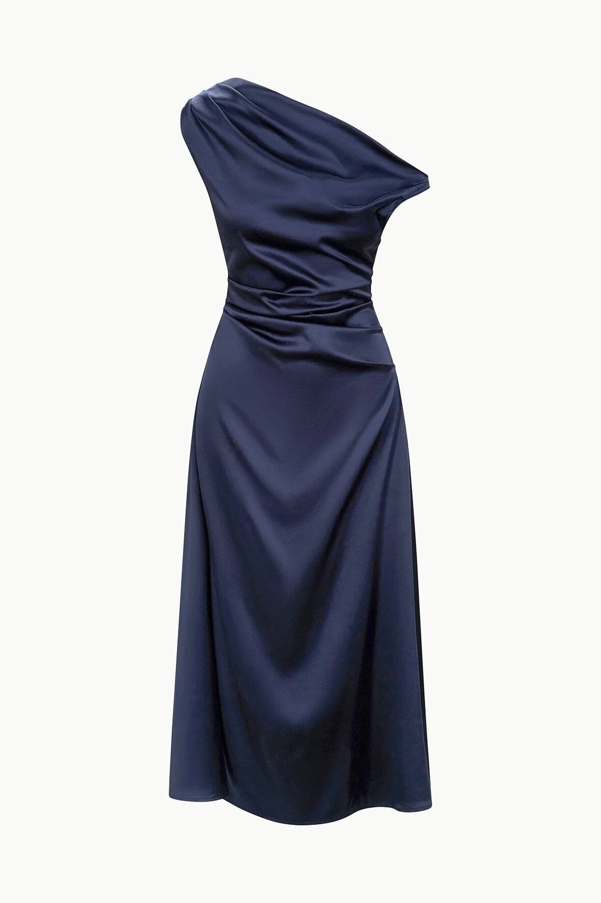 The Phare Dress features a draped off-the-shoulder neckline, a fitted waist and an ankle-grazing length. Updated in our stretch silk, this dress is perfect for a special occasion. MORE DETAILS - 93% Silk, 7% Spandex - Model is 5'10 and wearing a size 4 - Dry Clean Only