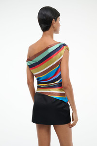 An off-the-shoulder top crafted from a silk satin fabric that offers some stretch for added ease. The Phare Top features a drapey yet fitted silhouette for any occasion. MORE DETAILS - 93% Silk, 7% Spandex - Model is 5'10 and wearing a size 4 - Dry Clean Only - If between sizes, please consider sizing up.