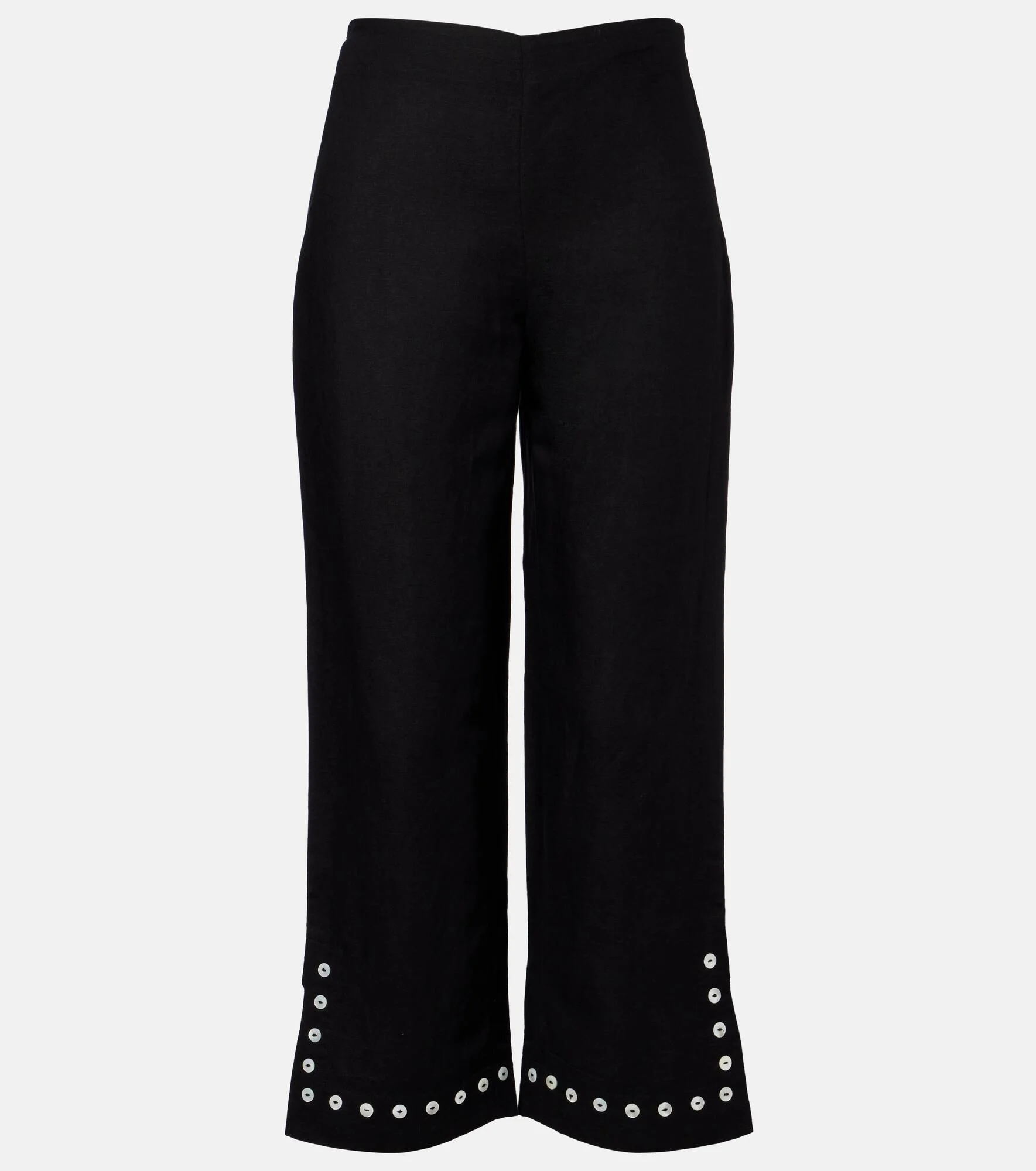 Staud seeks to break through repetition in design with thoughtful styles that are empowering and accessible. The Piha flared pants are crafted from a breathable linen blend and detailed with buttons at the hem. Product Details - Material: 52% linen, 48% viscose - Care instructions: dry clean - Made in Vietnam - Designer color name: Black - Item color: black - Elasticated waistband - Closure: zipped side, hook fastening - Item number: P01115577 Size & Fit - True to size - Non-stretchy fabric - Straight leg - The model seen in the picture is 178cm-5'10" and wearing a size XS