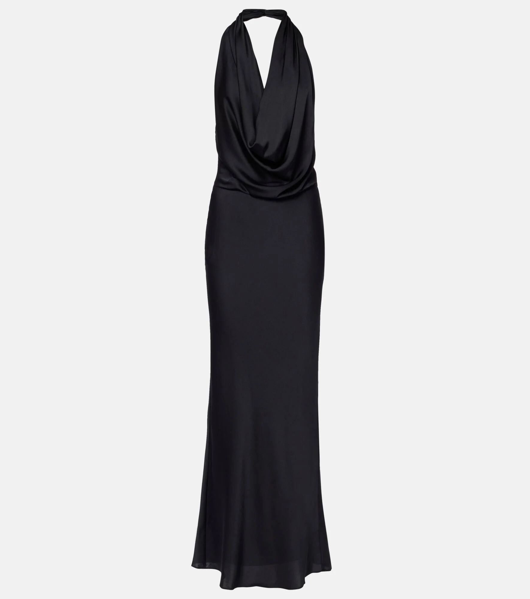 Staud seeks to break through repetition in design with thoughtful styles that are empowering and accessible. The Poppi gown is crafted from a lustrous silk blend into a halterneck silhouette and boasts a V-neckline and elegant draping at the front. Product Details - Material: 90% silk, 10% elastane - Care instructions: dry clean - Made in China - Designer color name: Black - Item color: black - Lining: 100% polyester - Closure: concealed zipped back - Item number: P01104655 Size & Fit - True to size - Low back - Cinched waist - Non-stretchy fabric - The model seen in the picture is 178cm-5'10" and wearing a size US 4