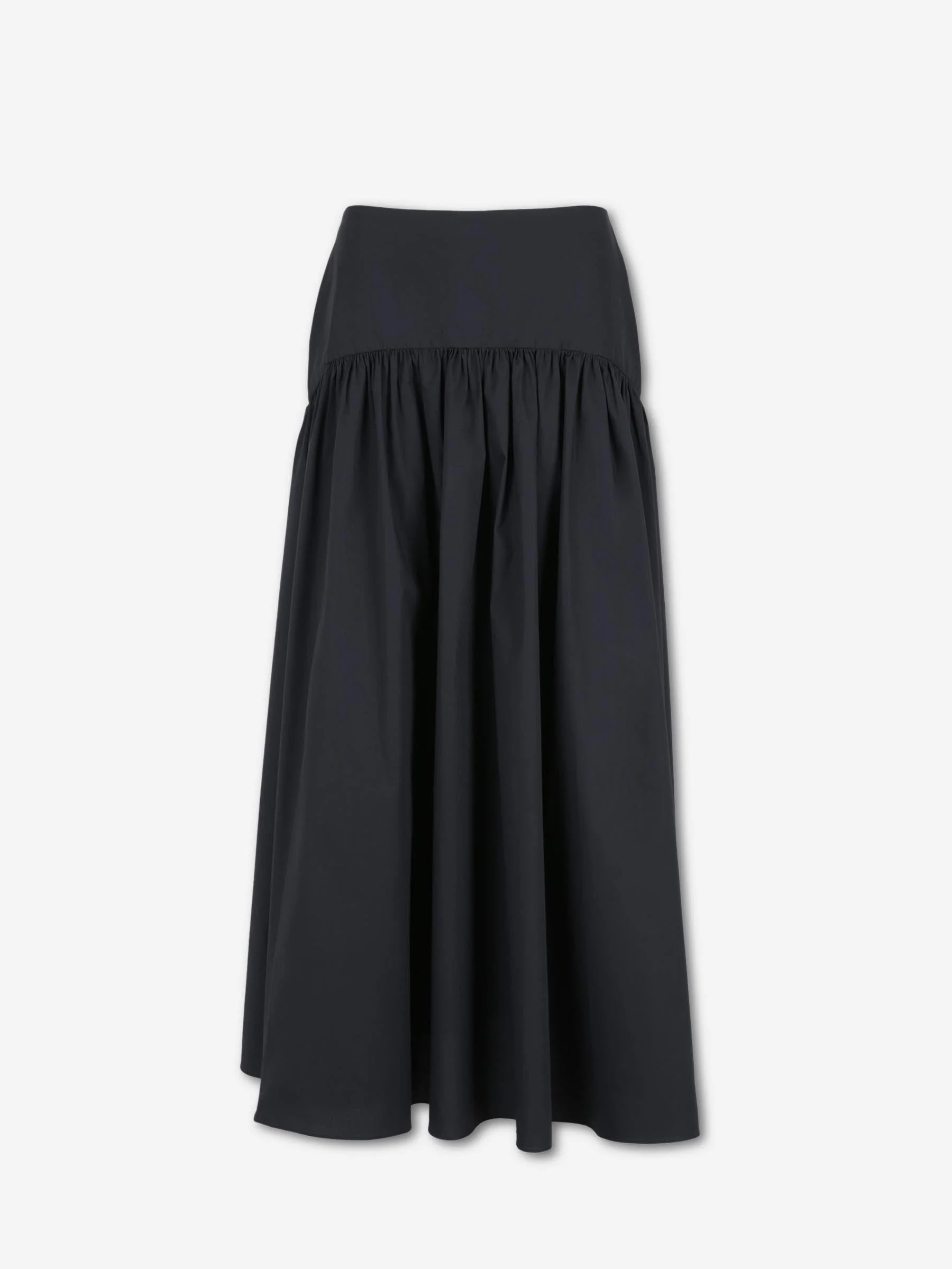 SKU: 750-001739 01 BRAND ID: R26R6148PO Skirt By Staud • Midi skirt • Regular fit • Made from cotton fabric • Curved yoke • Concealed back zipper • Composition: 98% cotton, 2% elastane • Made in: Italy