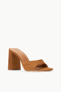 The Sloane Heel is an open toe leather sandal with chunky heel and square toe. This style features a cushioned leather footbed, leather sole and rubber heel cap. MORE DETAILS - Suede Heeled Sandal - If between sizes, consider sizing up - Upper: 100% Cow Leather; Sole: 75% Cow Leather, 25% ABS - Heel Height: 90mm / 3.5"
