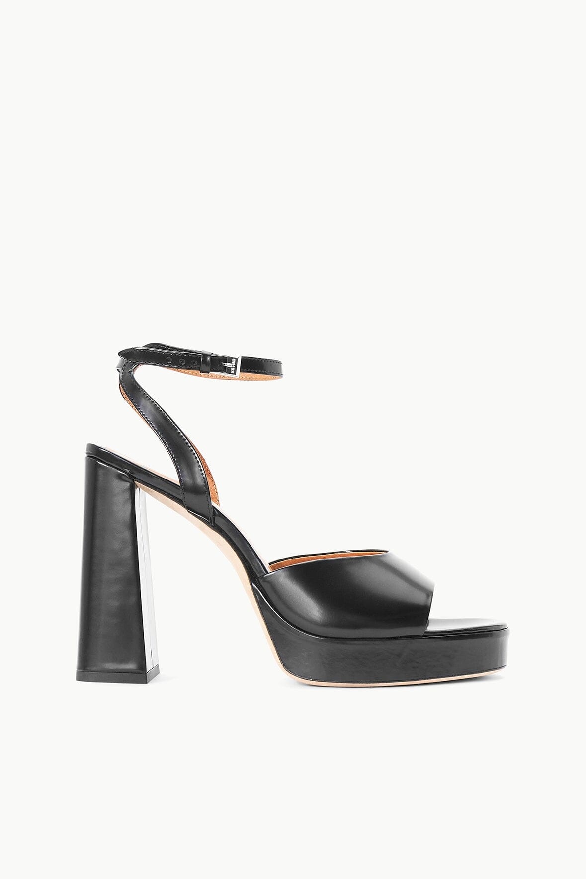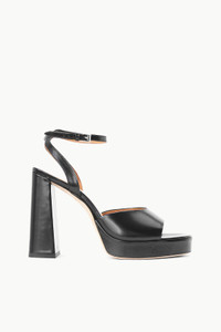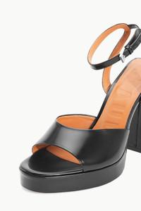 Updated for the season with a platform, the Solange is an open toe heel with ankle strap and buckle closure made out of polished leather. MORE DETAILS - Leather Platform Heel in Black - If between sizes, consider sizing up - Upper: 100% Cow Leather; Self: 75% Cow Leather, 25% ABS - Heel Height: 125mm / 4.9"