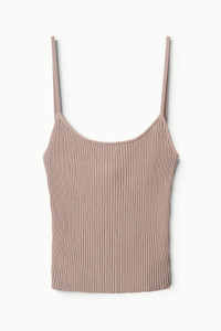 A rib knit camisole, the Soleil is an essential tank for layering with ease. MORE DETAILS - 65% Viscose, 35% Nylon - Model is 5'10 and wearing a size S - Machine Wash Cold. Tumble Dry Low. Or Dry Clean.