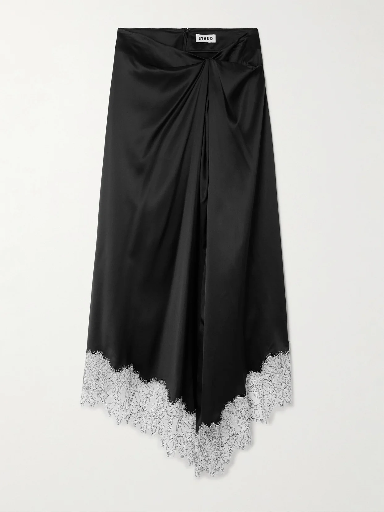 Sonoma Asymmetric Gathered Lace-trimmed Silk-blend Satin Midi Skirt