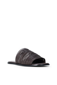 The Alessandra Flat delivers effortless style with its slip-on design and corded leather straps. The square toe silhouette offers a modern edge with added the added comfort of a flat slide. MORE DETAILS - Leather Cord Flat Sandal - Upper: 100% Lamb Leather, Sole: 70% Cow Leather, 30% Rubber