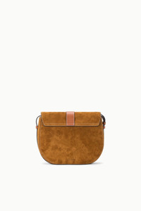 The Bella Saddle Bag is a suede flap closure bag featuring our signature hardware and an adjustable long strap. The Bella has an interior zip pocket and can be worn as a crossbody or on the shoulder. MORE DETAILS - Suede Crossbody Saddle Bag - Self: 100% Cow Leather