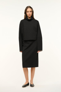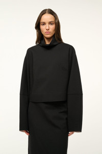 The Binoche Top is an easy ponte pullover top with a mock turtleneck and sculptural sleeves. This style pairs perfectly with the Pascale Skirt or the Knack Pant. MORE DETAILS - 70% Rayon, 25% Nylon, 5% Spandex - Model is 5'10 and wearing a size S - Dry Clean Only