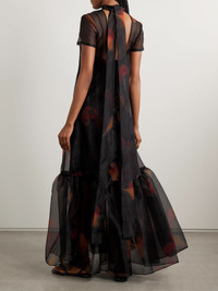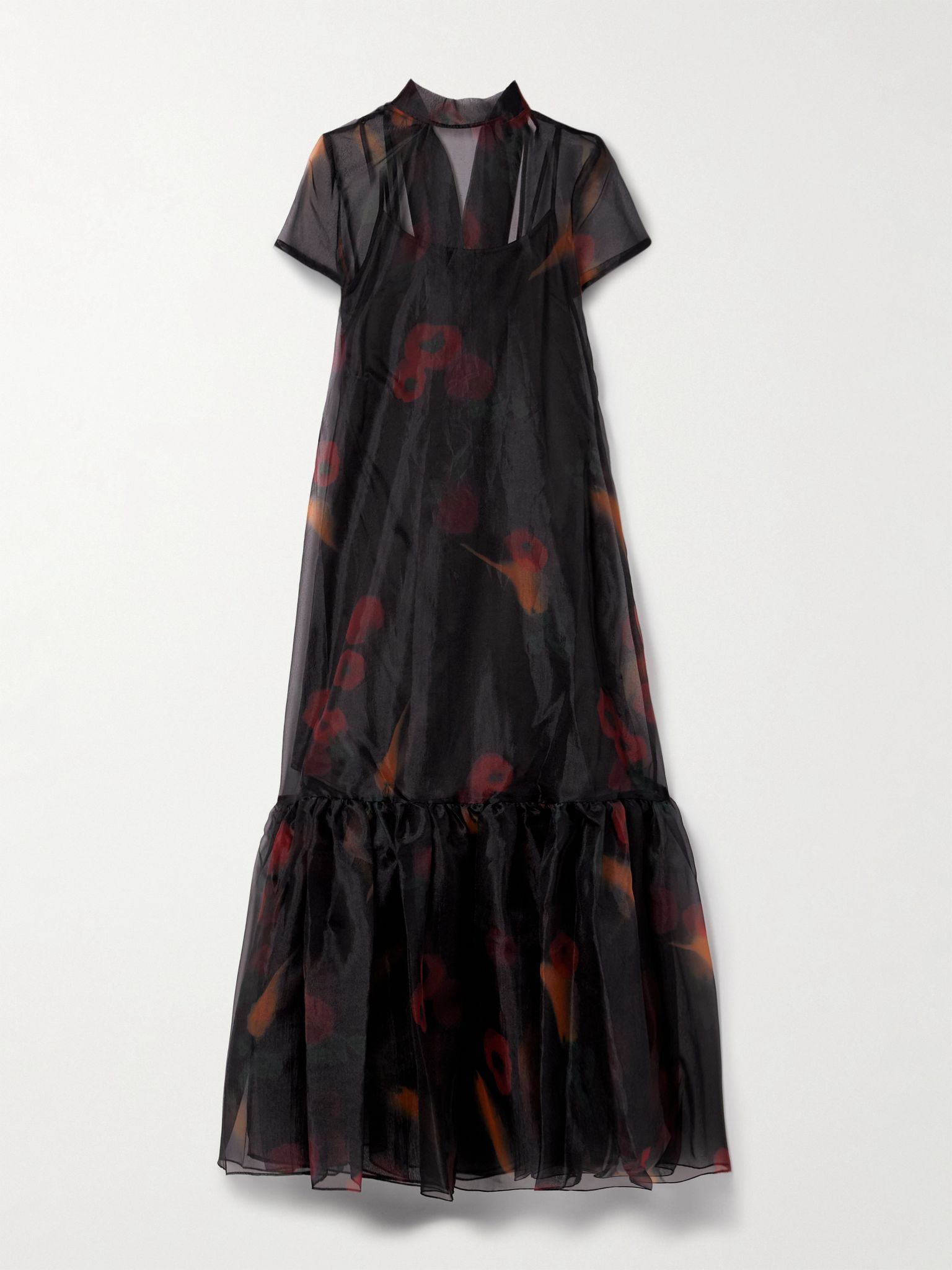 Romantic, sheer dresses like STAUD's 'Calluna' style are at the top of our must-have list for Spring '25. Cut from floral-print organza, it has a loose shape with a voluminous, tiered hem and dramatic bow at the back. The tonal satin slip ensures coverage. Size & Fit - Fits true to size, take your normal size - Intended for a loose fit - Designed with a detachable, slim-fitting slip - Lightweight, non-stretchy fabric - Model is 177cm/ 5'10" and is wearing a size Small Details & Care - Black, red and burnt-orange organza - Ties at neck - 95% polyester, 5% elastane - Machine wash