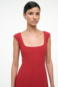A new flattering dress silhouette, inspired by the seaming on the Wells Dress, the Charlotte is a scoop neck midi dress with corset seams through the waist, flowing to an a-line skirt. MORE DETAILS - Self: 68% Polyester, 27% Viscose, 5% Elastane, Lining: 97% Polyester, 3% Elastane - Model is 5'10 and wearing a size 4 - Dry Clean Only