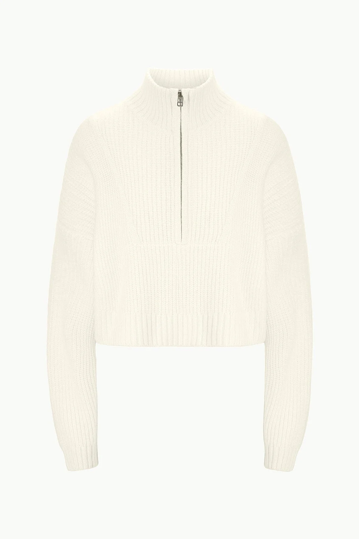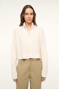 STAUD CASHMERE CROPPED HAMPTON SWEATER IVORY
