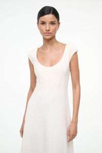 A new flattering dress silhouette, inspired by the seaming on the Wells Dress, the Charlotte is a scoop neck midi dress with corset seams through the waist, flowing to an a-line skirt. MORE DETAILS - Self: 68% Polyester, 27% Viscose, 5% Elastane, Lining: 97% Polyester, 3% Elastane - Model is 5'10 and wearing a size 4 - Dry Clean Only