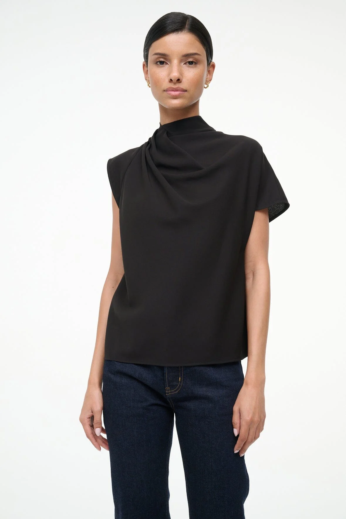 The Davina Top is a draped top with asymmetrical sleeves. This style offers gentle draping throughout the body and offers a roomy fit through the waist. MORE DETAILS - 70% Acetate, 30% Polyester - Model is 5'10 and wearing a size 4 - Dry Clean Only