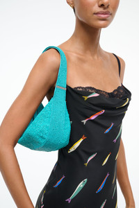 The Demy Shoulder Bag is a chic convertible bag that can be worn over the shoulder or hand held. It features signature hardware clasp on the strap to convert the shape to a handheld pouch. This style features a fully beaded body, a top zipper, and signature hardware. MORE DETAILS - Soft Beaded Shoulder Bag - Self: 100% Glass Beads, Lining: 100% Polyester, Trim: 100% Cow Leather