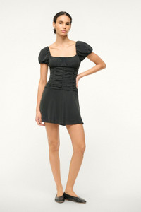 STAUD ELBA MINI SILK DRESS BLACK