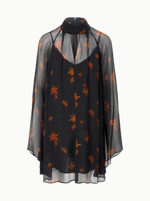 The Esther Mini Dress is a long sleeve flowy mini dress featuring a sheer chiffon overlay, a keyhole cutout, and a scarf neck tie feature. MORE DETAILS - Self: 100% Viscose, Lining: 100% Polyester - Model is 5'10 and wearing a size S - Dry Clean Only