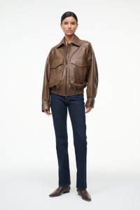 STAUD EUGENE LEATHER JACKET TRUFFLE