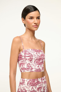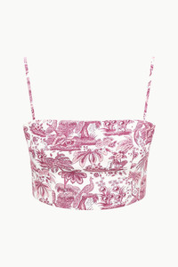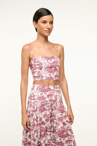 A cropped spaghetti strap tank made from stretchy cotton, the Federico Top features adjustable straps and a zipper closure at the back. Pair this top with the matching Procida Skirt for a coordinating look. MORE DETAILS - 98% Cotton 2% Spandex - Model is 5'10 and wearing a size Small - Dry Clean Only