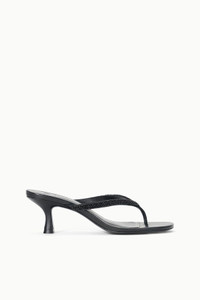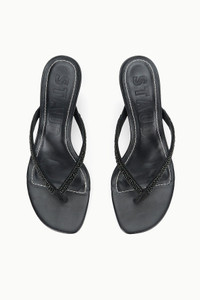 The Freja Kitten Heel is a new thong-style kitten heel with a beaded upper, perfect to dress up or down. MORE DETAILS - Leather Thong Kitten Heel - Upper: 90% Glass Beads, 10% Lamb Leather, Sole: 95% Cow Leather, 5% Rubber