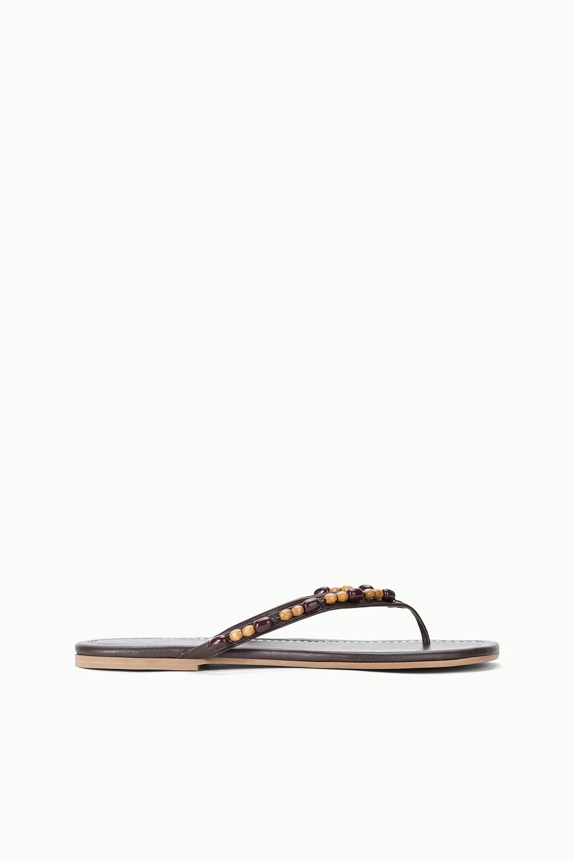 The Freja Thong is our new leather sandal for the season, crafted in buttery nappa leather with a wood bead trim. MORE DETAILS - Leather Thong Sandal - Upper: 100% Lamb Leather, Sole: 100% Rubber
