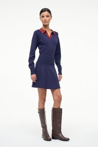 The Gene Dress is a new easy sweater dress in our compact knit yarn, with a contrast collar detail and a fit and flare silhouette through the skirt. MORE DETAILS - 59% Viscose, 40% Nylon, 1% Elastane - Model is 5'10 and wearing a size S - Dry Clean Only