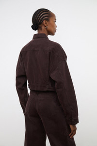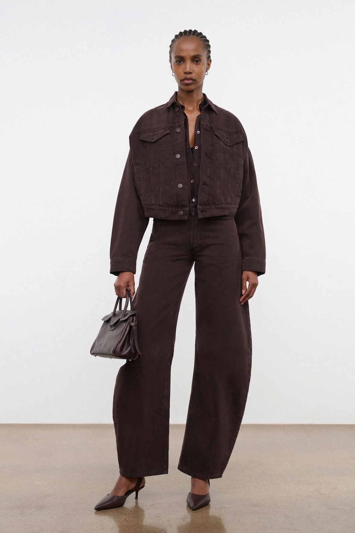 A classic, reimagined. The Glen Jacket is cut from rigid denim in a cropped silhouette with signature V-hem. It has a fitted body with roomy drop sleeves for a relaxed feel. Match it back to our V-waist jean, The Jackson. MORE DETAILS - Fabrication: 100% Cotton Denim - Denim Weight: 10oz - Care: Machine wash cold, inside out. Lay flat or hang to dry. - Model is 5'11 and wearing a size S - Fit: Relaxed & Cropped