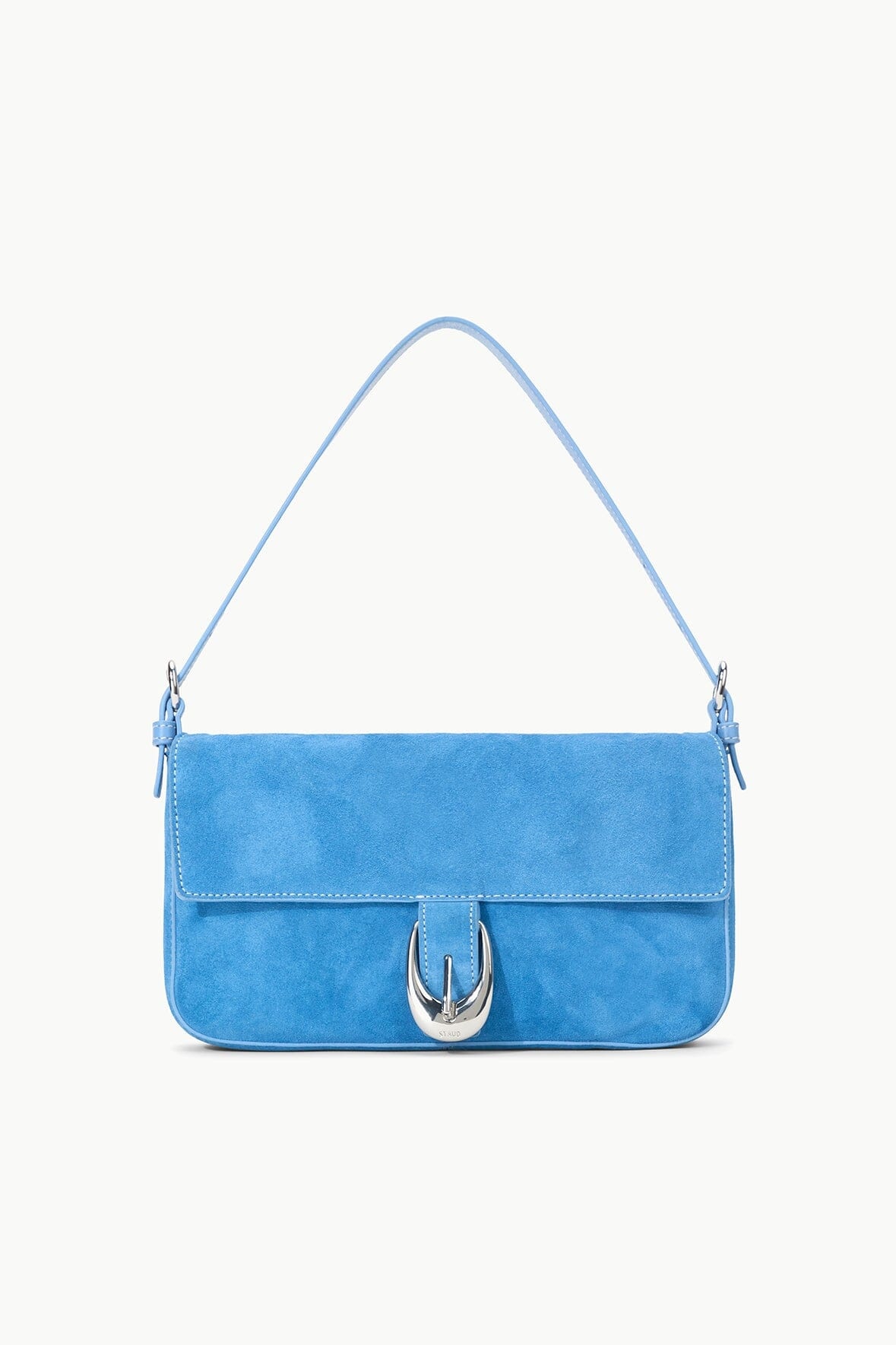 The Harlow Bag is our newest shoulder bag, featuring our signature Moon buckle hardware. This style features a center front Moon buckle, and has a snap closure and interior pocket. MORE DETAILS - Suede Shoulder Bag - Upper: 100% Suede - 9.8" W x 5.5" H x 1.6" D x 6.8" Handle Drop