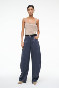 The Harrison Pant is a high rise barrel-leg pant in a soft, drapey cotton chambray. This style features a zip fly and back pockets. MORE DETAILS - 55% Linen, 44% Viscose, 1% Spandex - Model is 5'10 and wearing a size 4 - Dry Clean Only