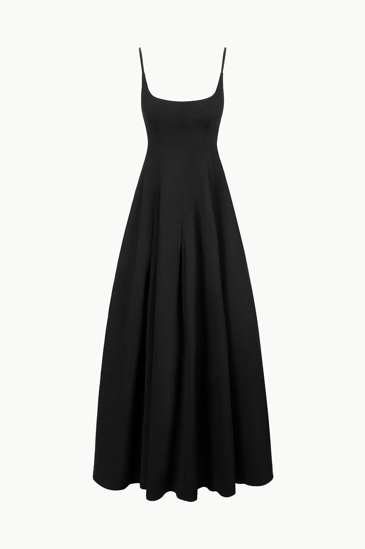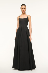 A formfitting bodice sweeping into a maxi a-line skirt, the Joy features hidden side pockets and a hidden zipper closure down the back. MORE DETAILS - Self: 60% Cotton, 40% Polyester - Model is 5'10 and wearing a size 4 - Dry Clean Only