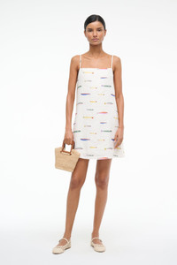 STAUD LAURA LINEN MINI DRESS POP SARDINES IVORY