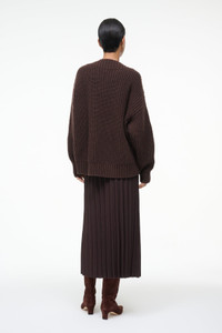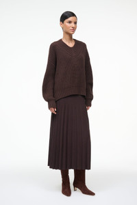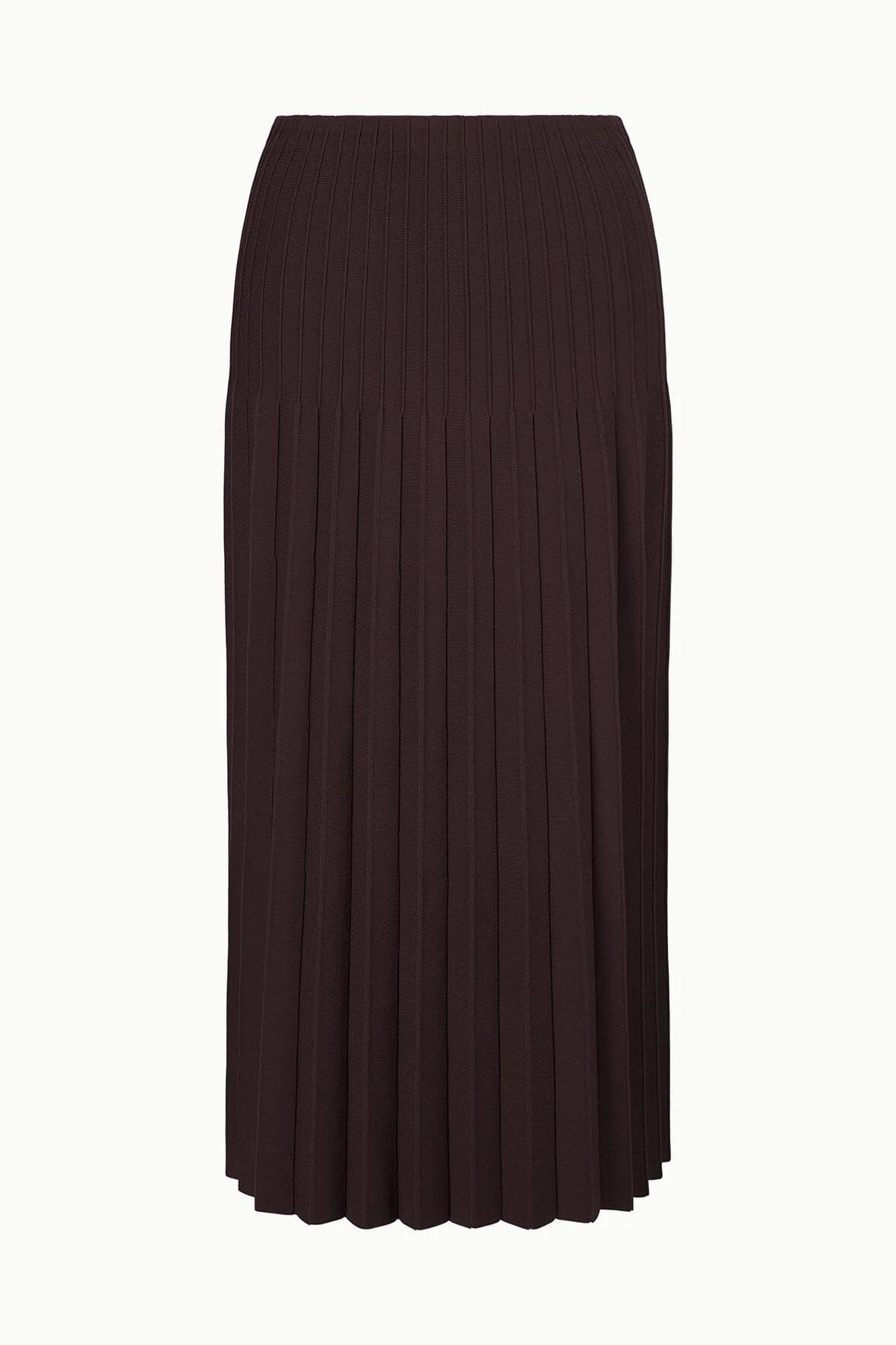 The Lena Skirt is an easy compact knit midi length skirt with pleats and ottoman stitch detailing at the waist. MORE DETAILS - 59% Viscose, 40% Nylon, 1% Elastane - Model is 5'10 and wearing a size S - Dry Clean Only